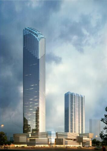 项目总建筑面积371624.94m2,其中:住宅建筑面积35654.64m2、超高层综合楼177600m2(含避难间建筑)、商业裙楼建筑面积为36337.4m2、物业管理用房建筑面积750m2、社区居委会用房面积80m2、公厕建筑面积30m2;地下室面积121172.9m2。总居住户数266户,机动车停车位2363个,非机动车停车泊位6000个。