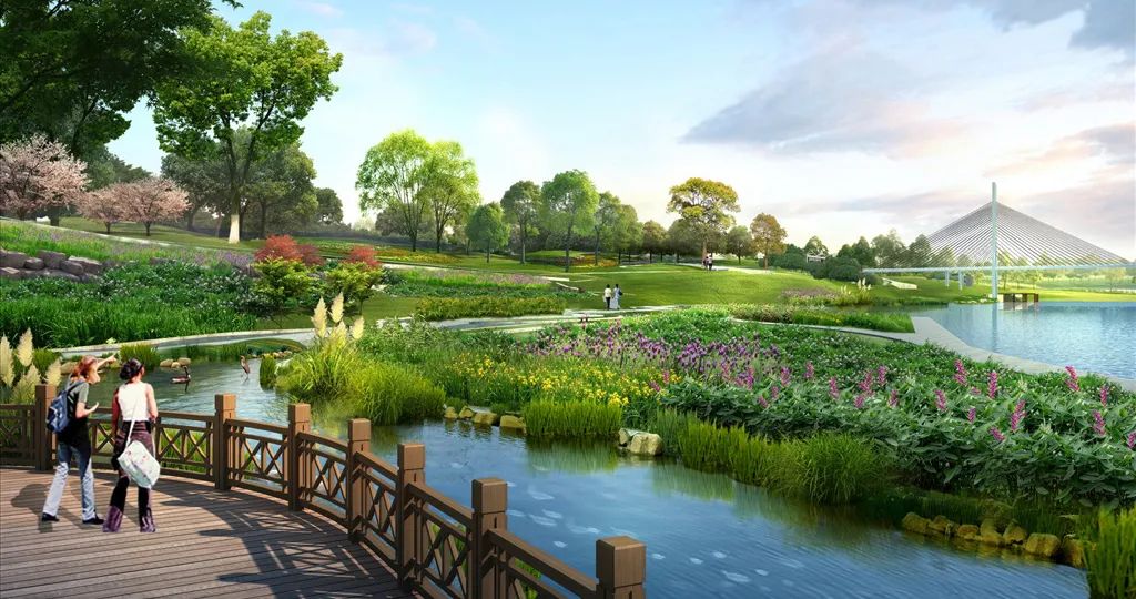 景观设计:基于对当地本土湿地植物的调查,本次设计选择美人蕉、香蒲、再力花、菖蒲、纸莎草、梭鱼草、睡莲、水鳖等作为人工湿地工程的挺水植物和浮水植物先锋物种。