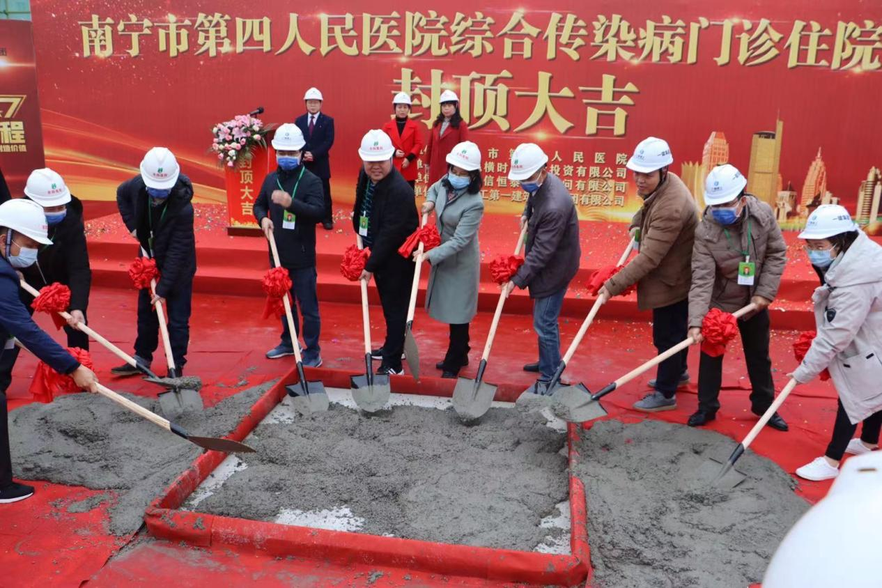 近日,70net永乐高监理的南宁市第四人民医院综合传染病门诊住院楼项目顺利举行封顶仪式,南宁市第四人民医院院长林健燕、党委书记吴锋耀,代建单位南宁纵横时代建设投资有限公司总经理戚浩,五局第七分公司党支部书记、常务副总经理、工会主席罗继振出席仪式,监理单位等参建单位代表及嘉宾参加仪式。