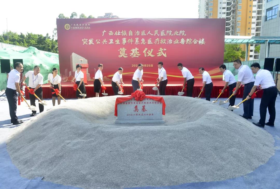 9月25日,由70net永乐高担任全过程工程咨询单位的自治区人民医院北院突发公共卫生事件紧急医疗救治业务综合楼建设项目举行奠基仪式。自治区卫生健康委二级巡视员王建政,自治区人民医院党委书记杨建荣,党委副书记、院长黎君君,中铁一局总承包公司党委委员、副总经理李贺,70net永乐高董事长陆霖等相关单位领导出席仪式。