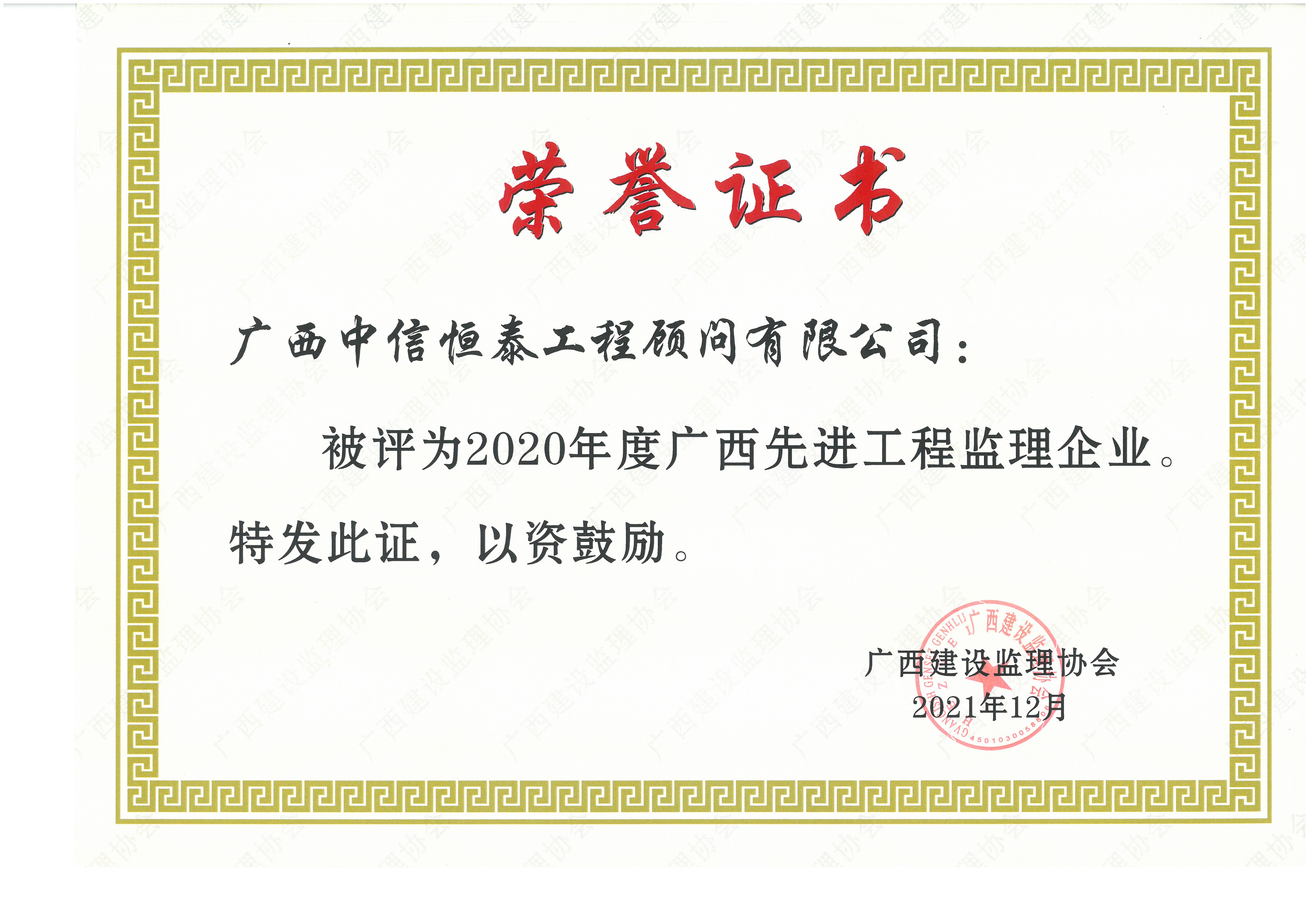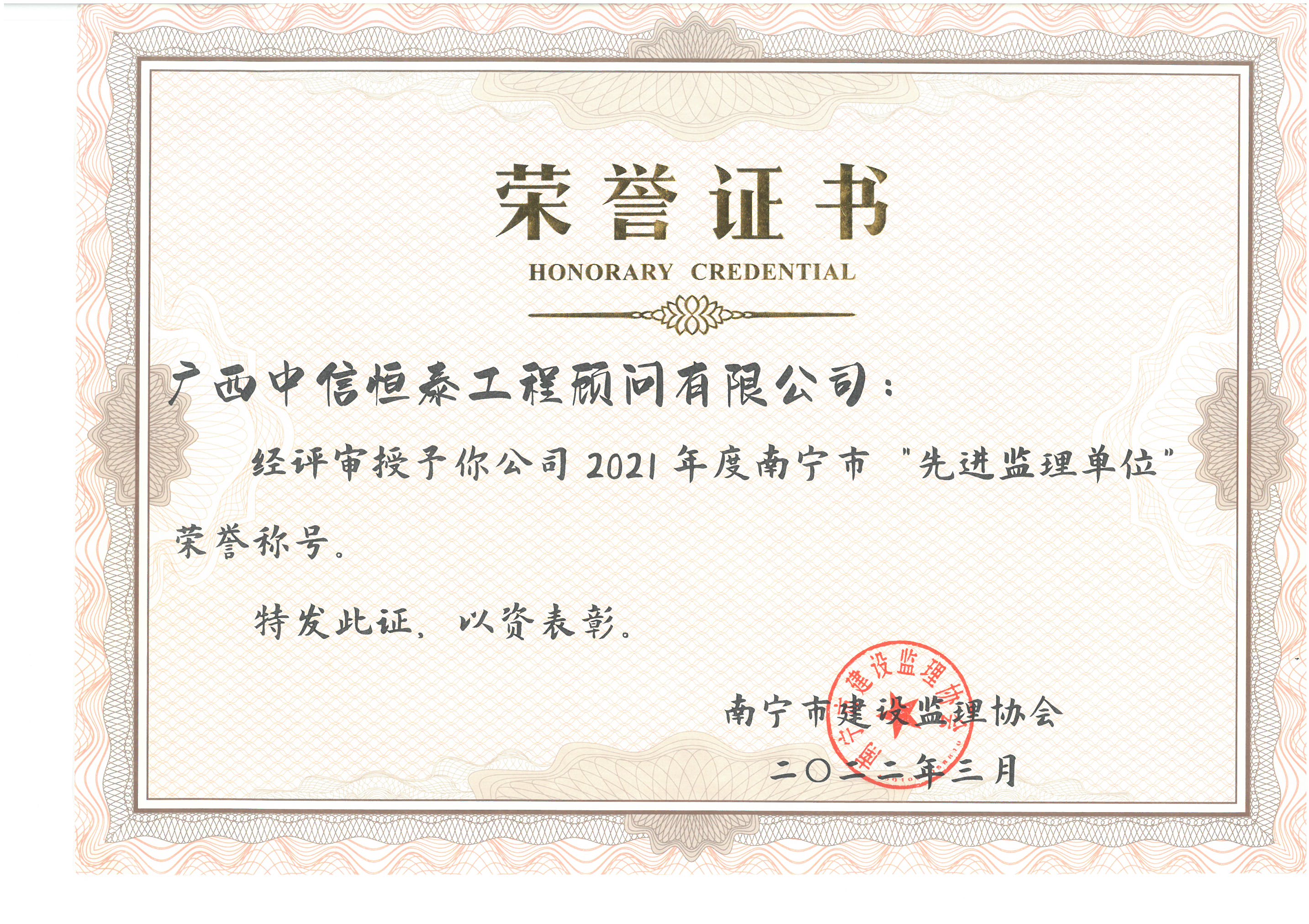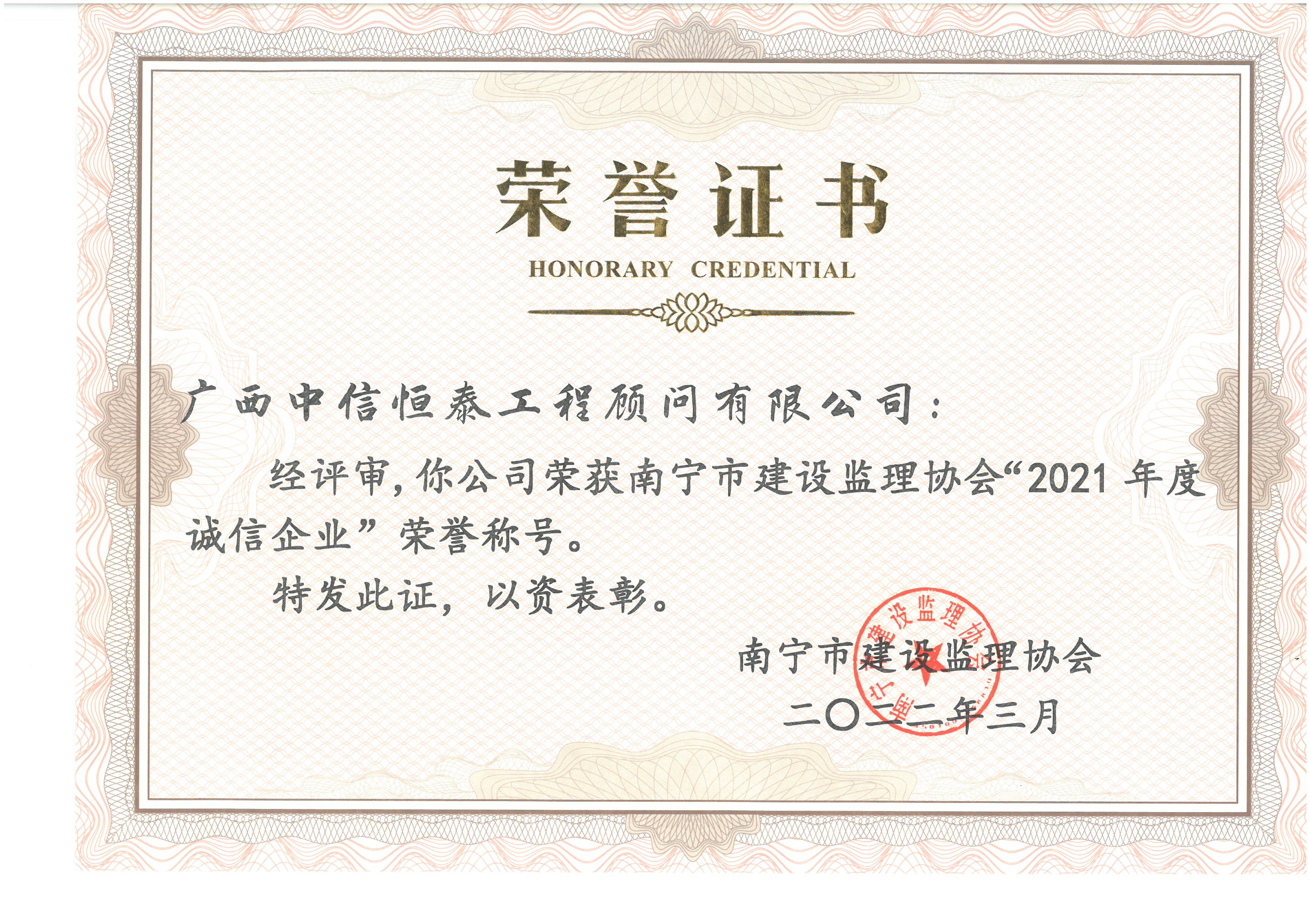 南宁市建设监理协会“2021年度诚信企业”