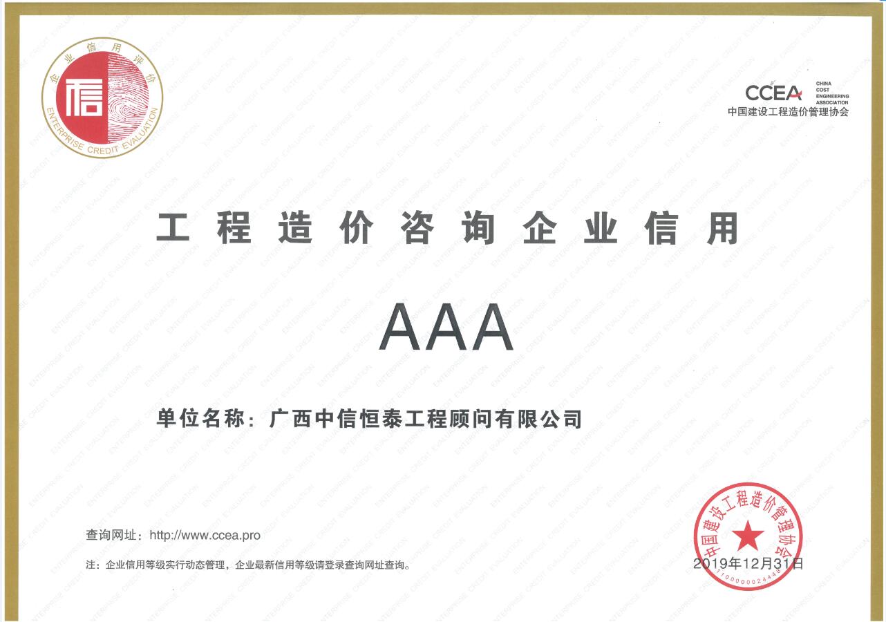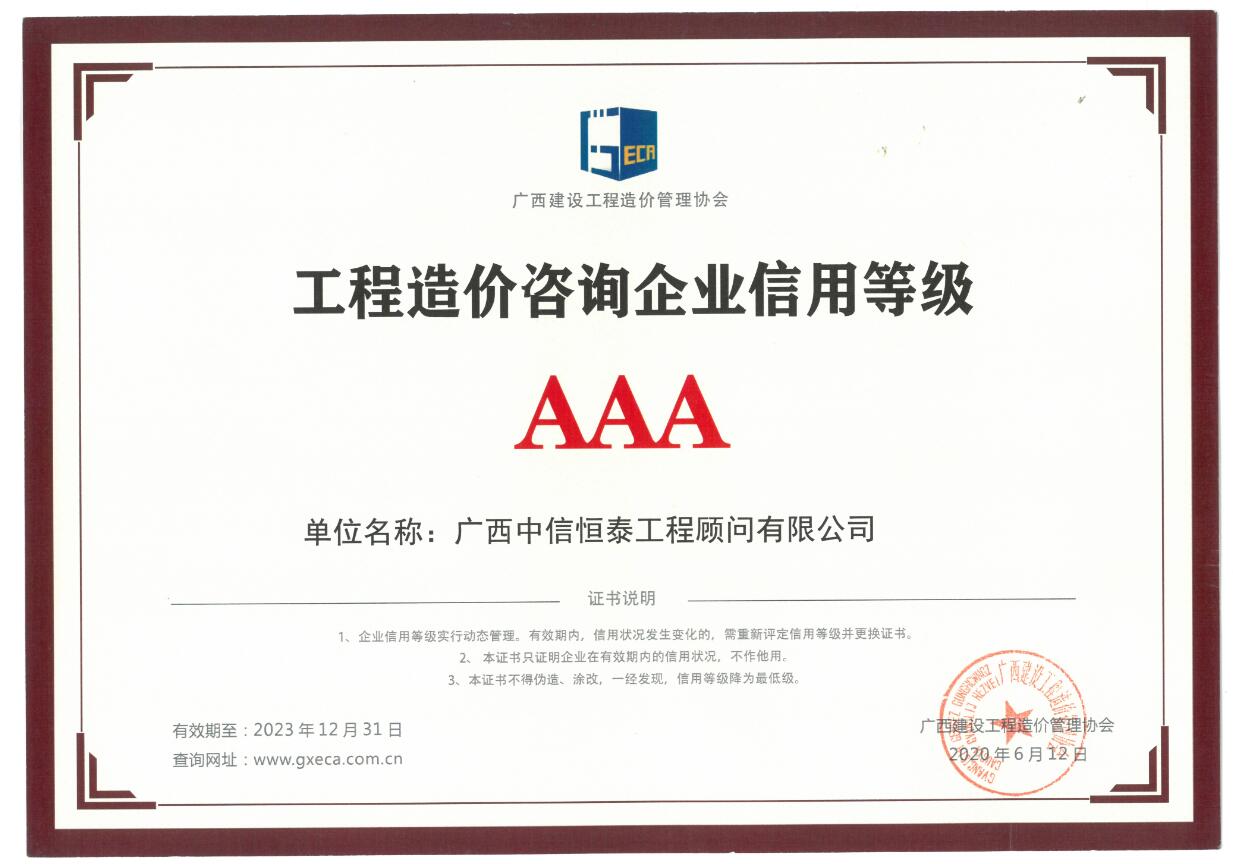 广西造价咨询信用评价AAA等级证书2020-2023