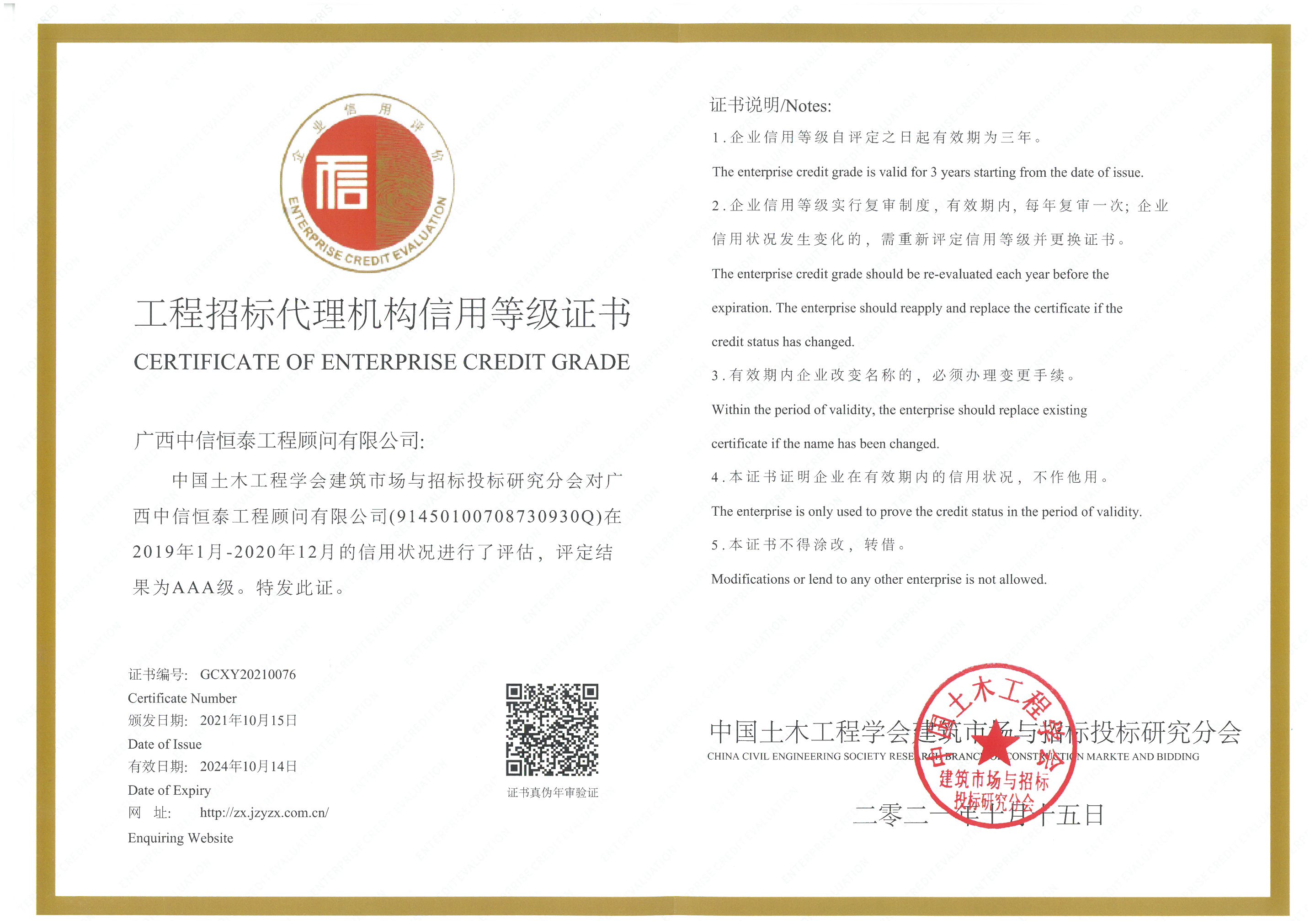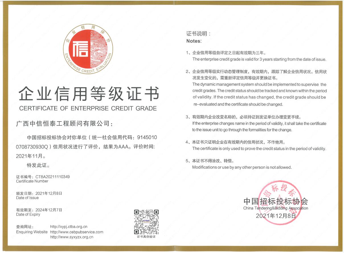 中国招标投标信用等级证书AAA2021-2024