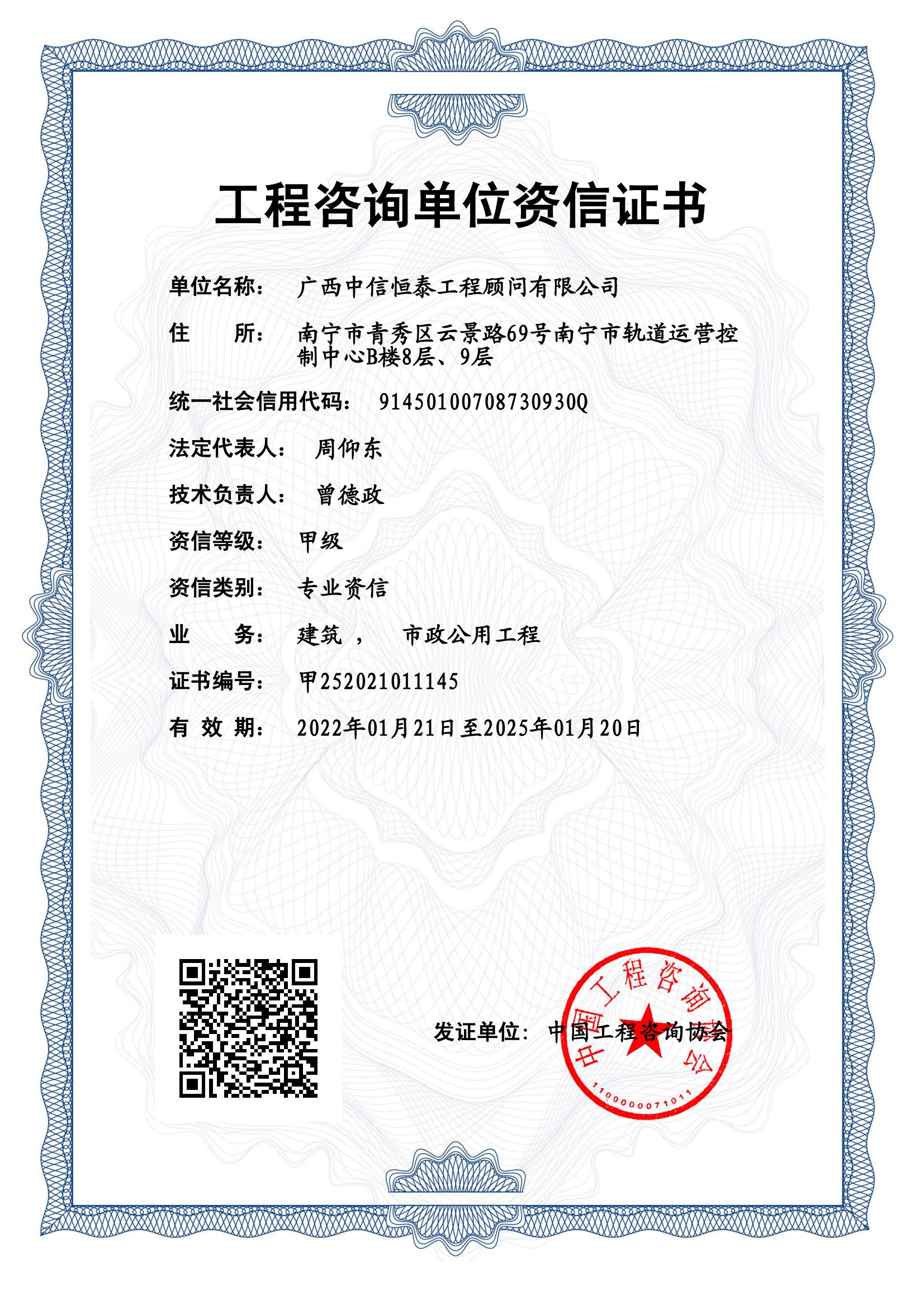 工程咨询单位甲级资信(建筑市政、公用工程)